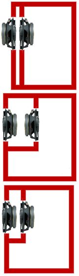 W układzie z membraną do magnesu głośniki są podłączane w fazie, tak aby membrany obydwu poruszały się synchronicznie w tym samym kierunku, w dwóch pozostałych przypadkach głośniki są podłączane w przeciwfazie. Niezależnie od typu układu, głośniki połączone są równolegle co powoduje, że razem mają impedancję równą połowie pojedynczego głośnika i pobierając dwa razy większy prąd przy tym samym napięciu wejściowym.