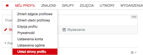 Jeżeli jesteś zarejestrowanym użytkownikiem na portalu społecznościowym Muzykosfera, musisz się na początku zalogować na swoje konto. Teraz wybierz Profil i Układ strony profilu.